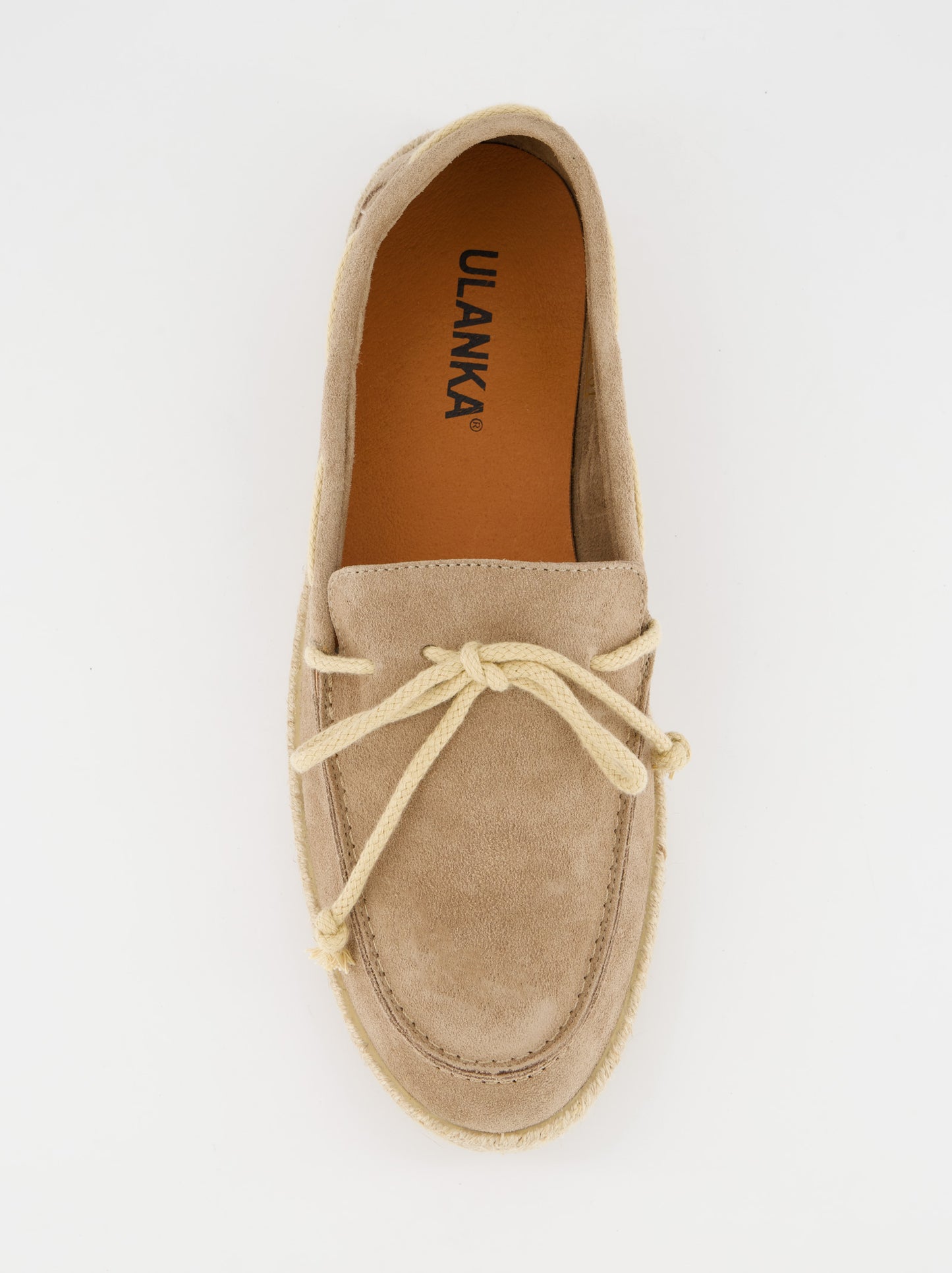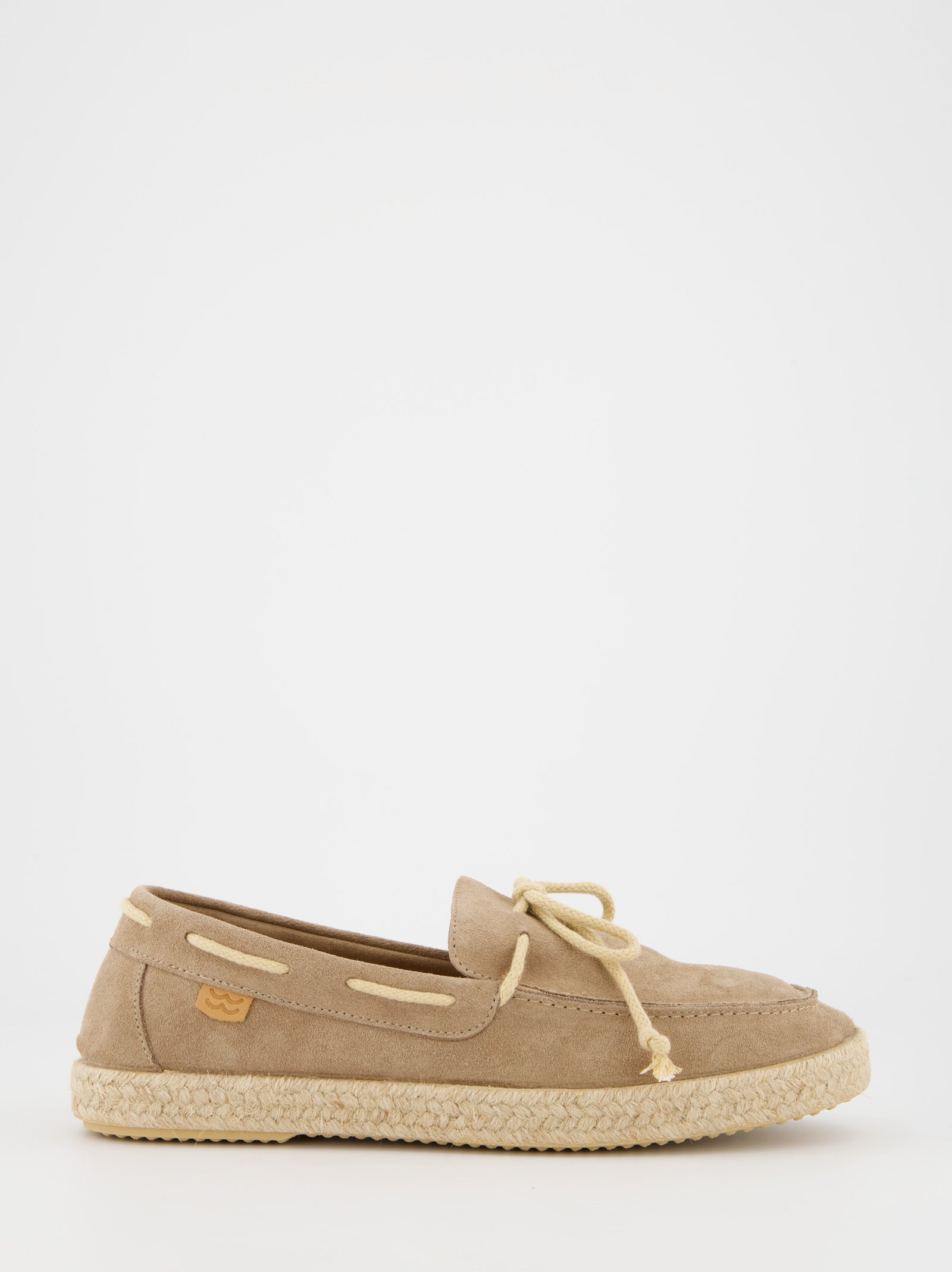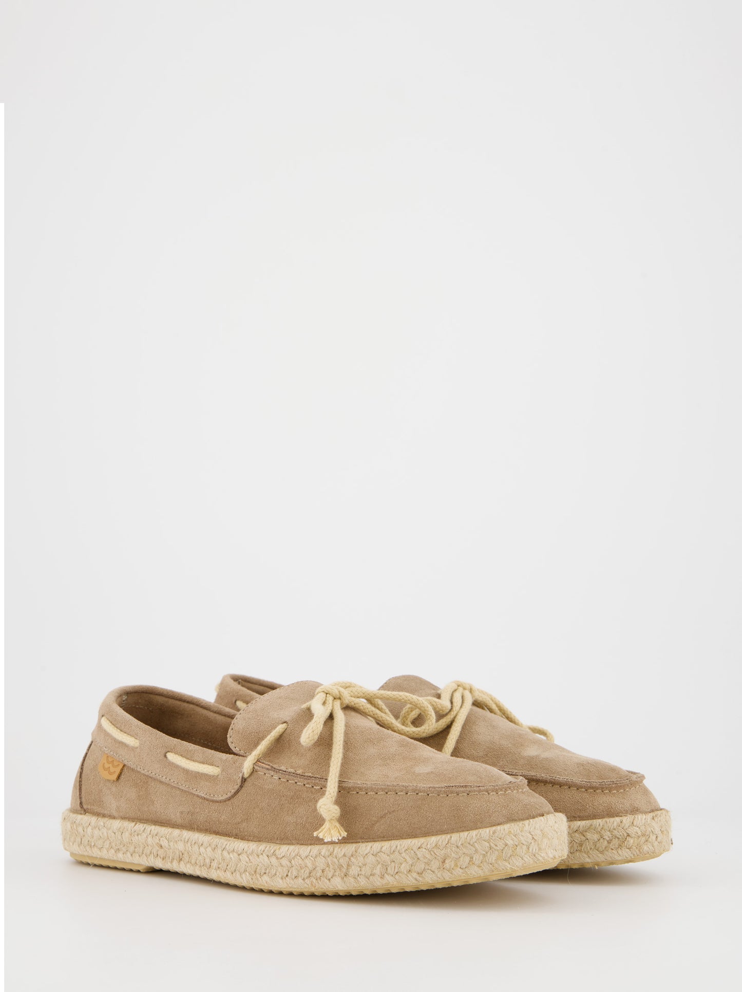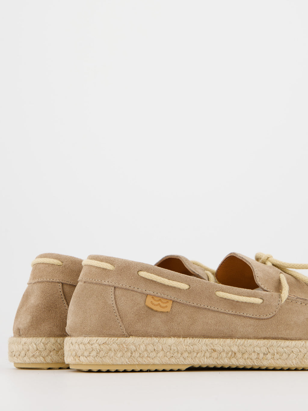 Mocasines náuticos fabricados en ante. Suela de esparto- Cordones de algodón. Fabricados en España.