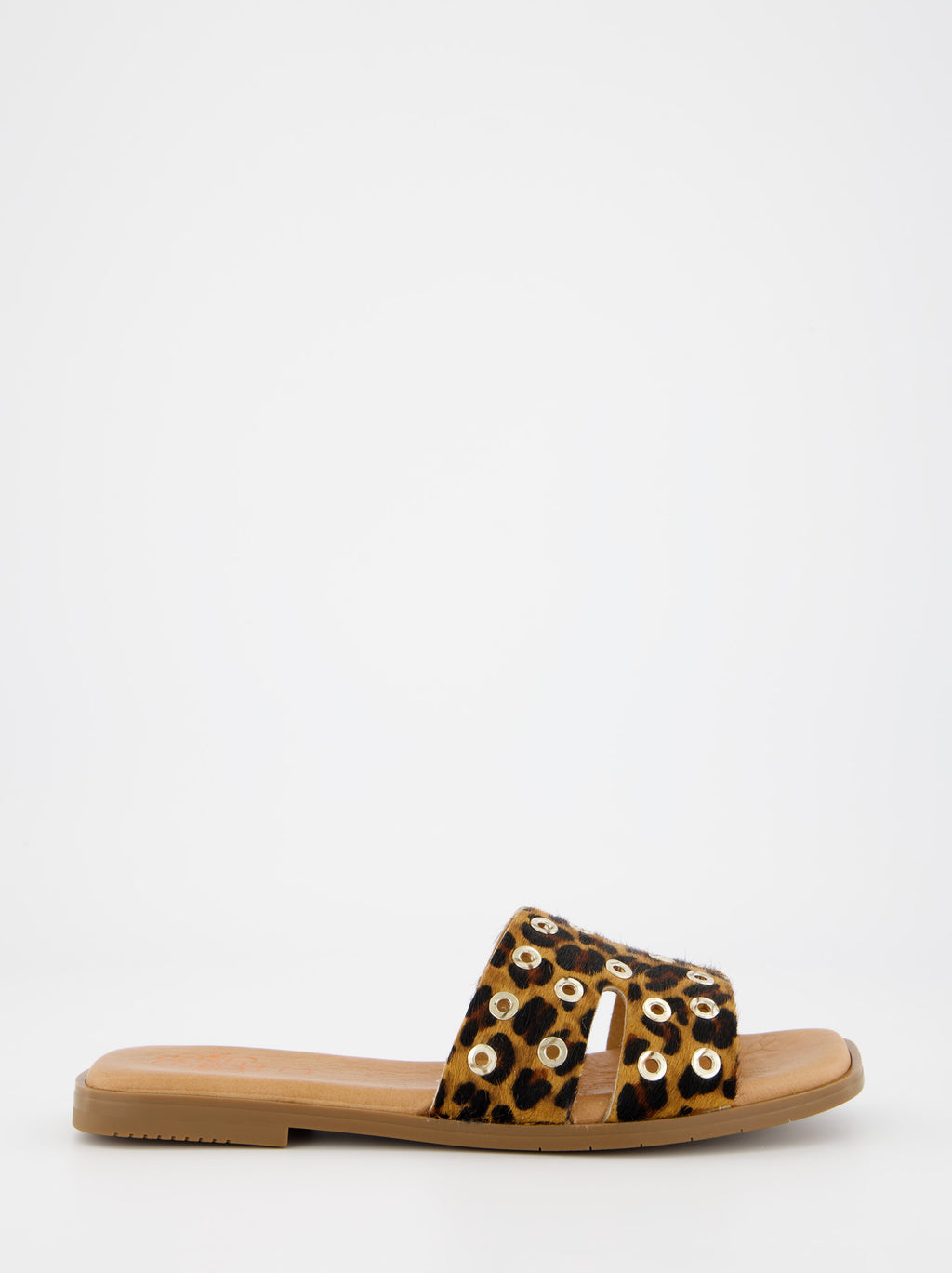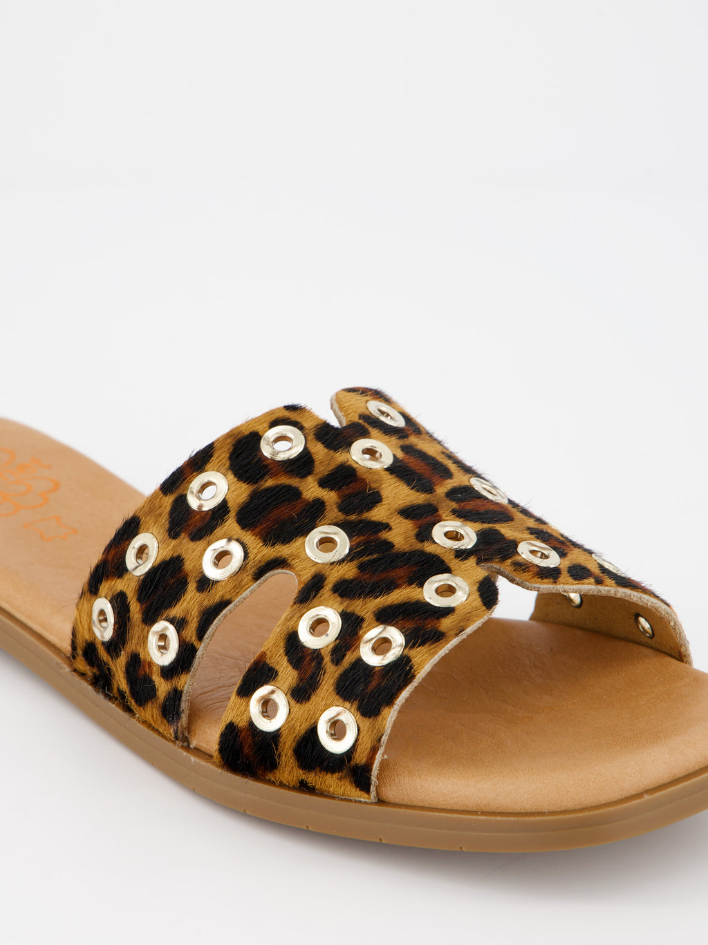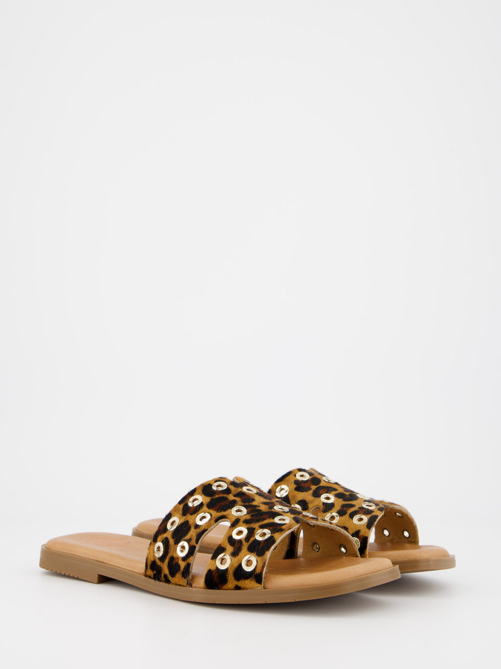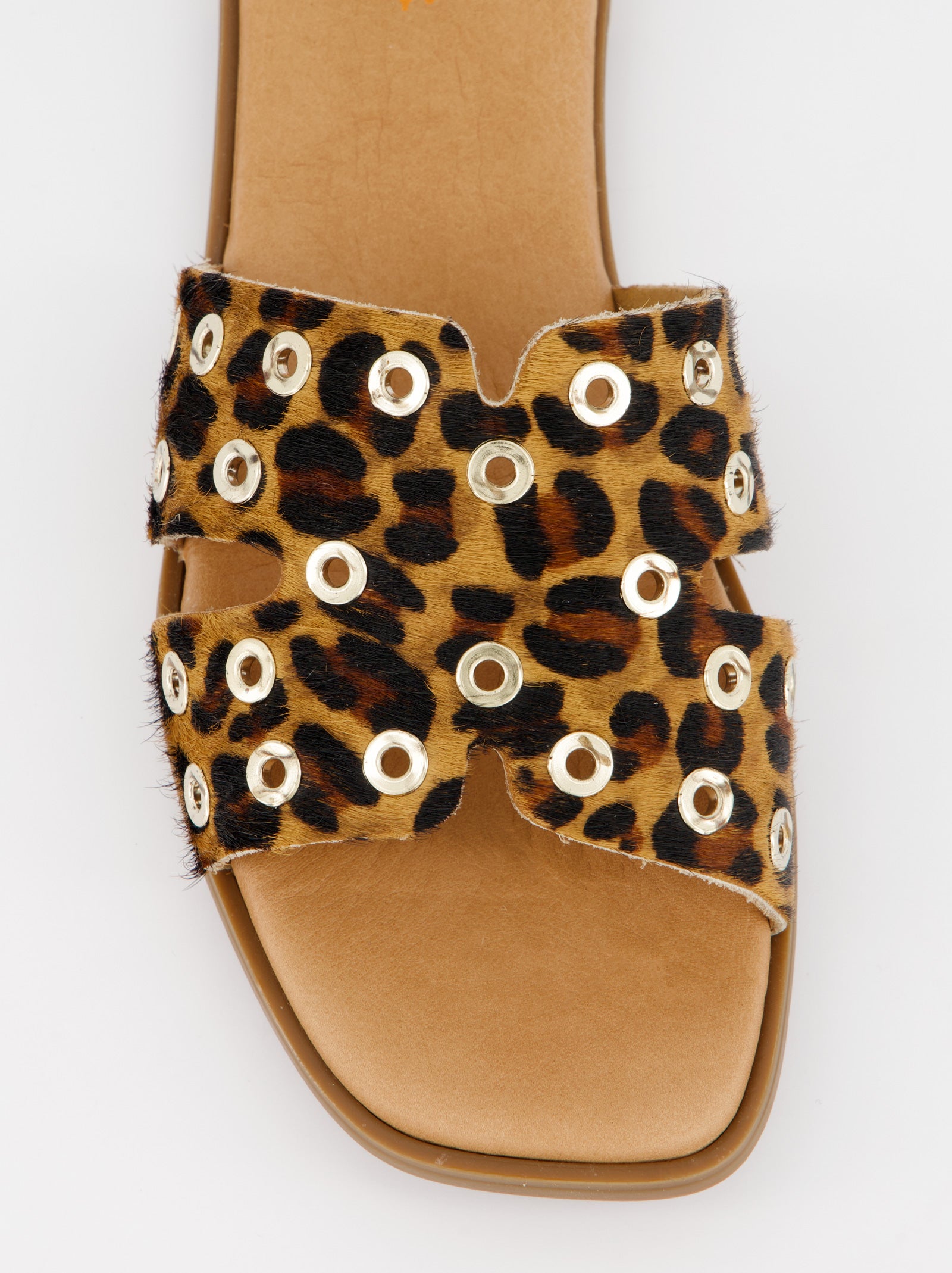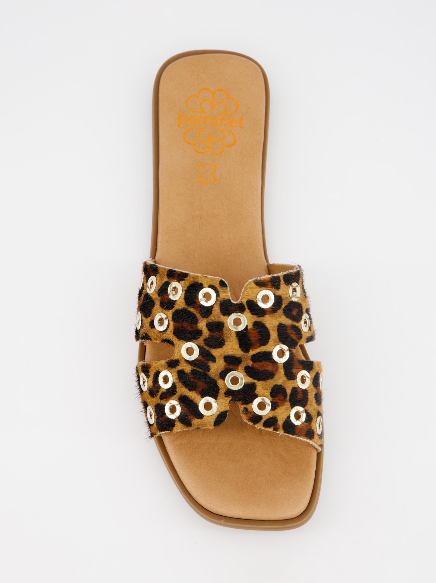 Sandalia plana de pelo y piel con tachuelas Porronet