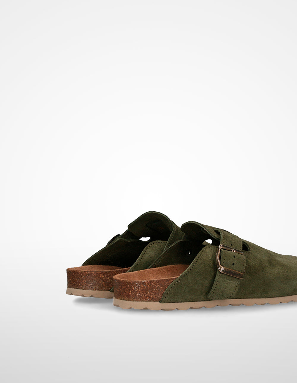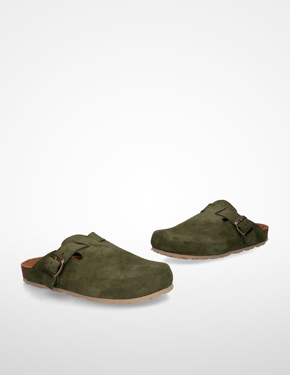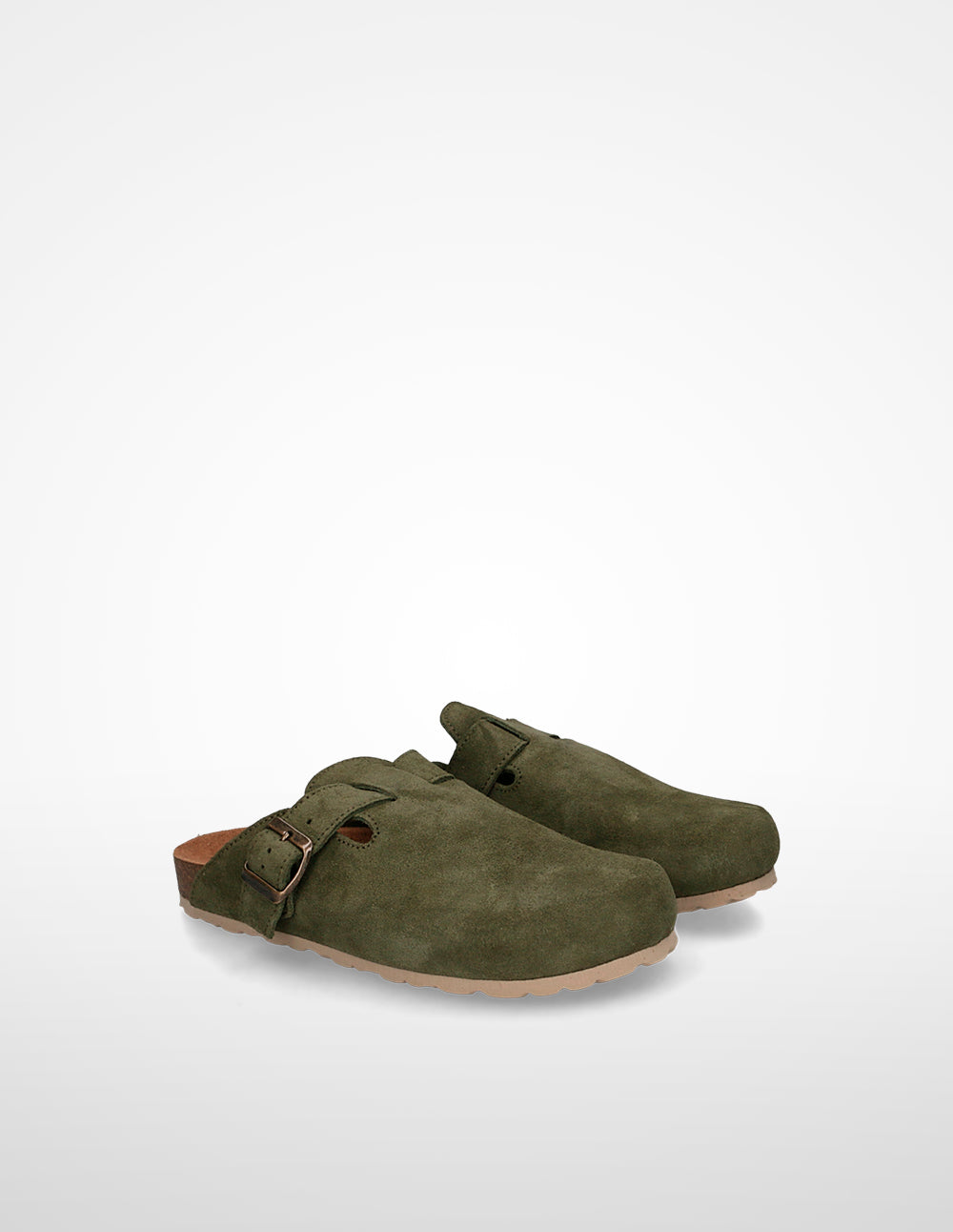 Zuecos bio fabricados en piel. Hebilla decorativa. Suela de 2 cm.